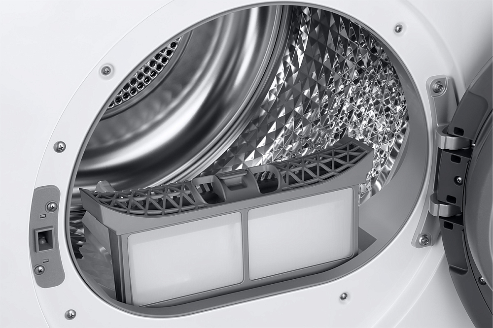 Интеллектуальна сушка Сушите вещи легче и эффективнее с интеллектуальной панелью AI. Персонализированные циклы сушки запоминают ваши предпочтения и выводят соответствующую информацию. Приложение SmartThings дает советы по циклам, помогает с планированием и диагностикой проблем, а также выбирает идеально подходящую программу сушки после цикла стирки. Энергоэффективность А+ Экономьте электроэнергию и берегите окружающую среду. Технология Heatpump (Тепловой насос) обеспечивает экономичное энергопотребление и бережную сушку вашей одежды. Рециркуляция горячего воздуха и использование хладагента для нагрева воздуха обеспечивают невероятный рейтинг энергоэффективности А+. Открывайте как захотите Выбирайте направление, в котором вы хотите открыть дверь, в зависимости от расположения вашей сушильной машины, так что вам не будет мешать стена или дверь. Кроме того, дверца прозрачная и позволяет увидеть процесс сушки. Одежда без складок Ваши вещи после сушки не нужно гладить. Выберите программу предотвращение складок , и когда цикл сушки будет закончен, барабан будет продолжать вращение без нагрева в течение 180 минут. Это позволяет одежде не лежать в одном положении продолжительное время. Разумный поход к сушке Ваша одежда будет сухой без лишней проверки. Система OptimalDry автоматически оптимизирует время и температуру цикла сушки, чтобы добиться идеального результата без пересушивания и повреждения одежды. Простота обслуживания Ухаживайте за вашей сушильной машиной с легкостью. Эффективный двухступенчатый фильтр представляет собой двухслойный сетчатый фильтр. Вам не потребуется обслуживать другой труднодоступный фильтр теплообменника. А двойной звуковой сигнала напомнят вам о необходимости очистки фильтра.