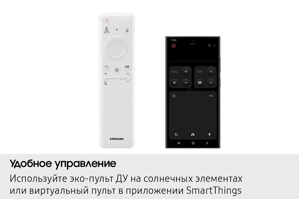 Современный дизайн ТВ Frame Элегантный, минималистичный и современный, телевизор The Frame монтируется вплотную к стене, как настоящая картина, и прекрасно вписывается в интерьер вашего дома. Регулируемая подставка Тhe Frame можно легко адаптировать с учетом особенностей декора вашего дома. Благодаря регулируемой по высоте подставке вы можете установить ТВ на нужную высоту и освободить место для саундбара и других устройств. Режим «Картина» с регулярно обновляемой бесплатной галереей шедевров Выключите телевизор и превратите его в собственную картинную галерею. Наслаждайтесь любимыми картинами и фото на экране The Frame. Домашняя галерея Art Home Развивайте свой творческий вкус легко и удобно. Познакомьтесь с коллекциями мастеров, которые регулярно обновляются, чтобы вы могли постоянно узнавать что-то новое. Art Home — это больше, чем просто домашняя галерея, это ваши личные врата в мир творчества и вдохновения. Великолепное качество изображения благодаря технологии QLED Смотрите телевизор с исключительным качеством изображения QLED. Телевизор The Frame создает яркое изображение с широким диапазоном цветов и высокой яркостью, чтобы вы могли насладиться происходящим на экране. Технология Samsung Vision AI Наслаждайтесь новыми функциями технологии Samsung Vision AI, доступными теперь в телевизоре Frame. Этот интеллектуальный продукт нового уровня позволяет вашему телевизору лучше распознавать ваши потребности и подстраиваться под них, предоставляя множество новых возможностей для развлечений.