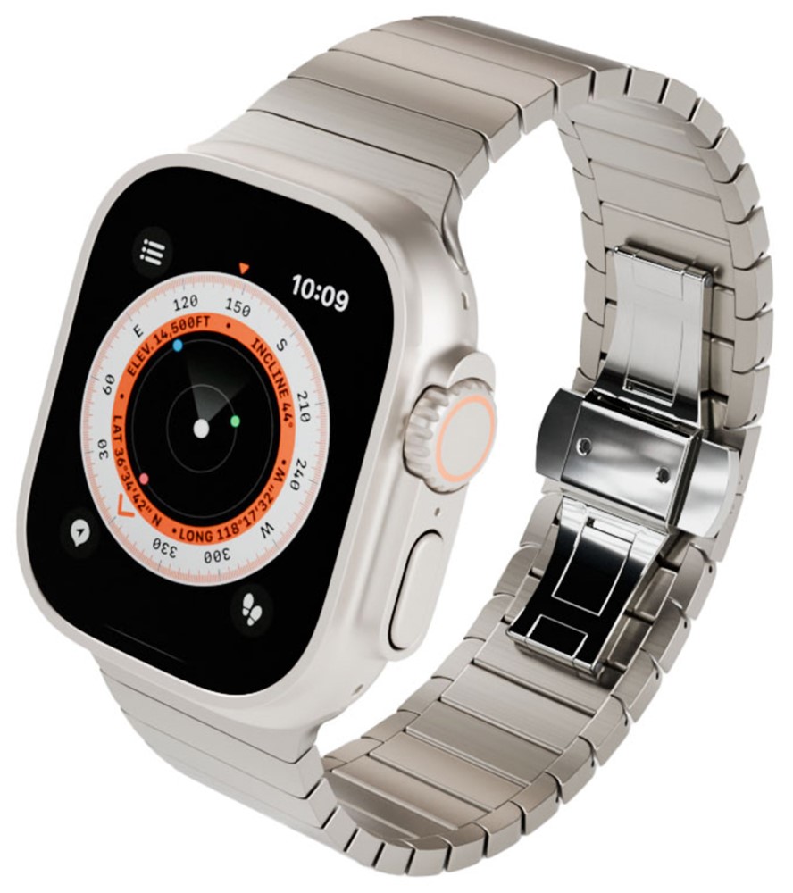 и представительный аксессуар для смарт-часов Apple Watch. Титановый браслет эффектно и солидно выглядит, удобно сидит и легко регулируется под ширину запястья. Дизайн и материалы