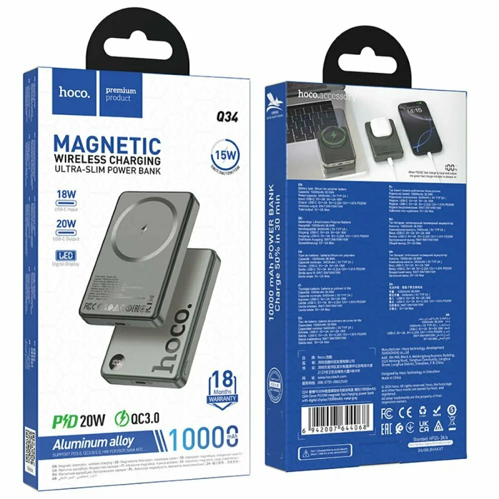 Внешний аккумулятор Hoco Q34 MagSafe 10000mAh Type-C (серебристый) — это отличный выбор для зарядки ваших устройств в дороге. Благодаря поддержке MagSafe Power Bank легко крепится к совместимым смартфонам, а современный разъем Type-C обеспечивает быструю и удобную подзарядку. Ёмкость 10000mAh позволяет заряжать гаджеты несколько раз, что особенно актуально в путешествиях или командировках. Стильный серебристый дизайн гармонично дополнит ваш образ, а компактные размеры обеспечивают комфортное использование и транспортировку. Купить аккумулятор — значит всегда быть на связи и не беспокоиться о разрядке устройства. Гарантия качества и доставка по России делают это предложение особенно выгодным для каждого пользователя.