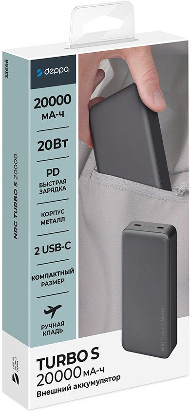 Внешний аккумулятор Deppa NRG Turbo S 20000 mAh графит