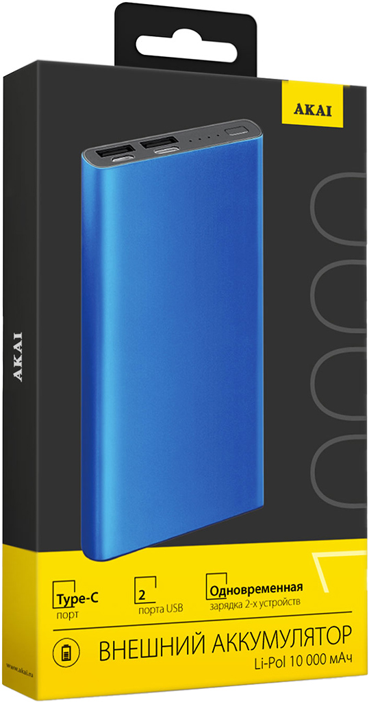Портативное зарядное устройство Akai BE-10003 ёмкостью 10 000 мА·ч и мощностью 10,5 Вт — надёжный источник энергии для всех видов устройств. Модель поддерживает одновременную зарядку через два порта USB-A, а порты microUSB и USB-C используется только для зарядки самого пауэрбанка. Компактный и прочный металлический корпус зарядного устройства Akai BE-10003 надёжно защищает внутренние компоненты. Индикатор уровня заряда своевременно оповестит о необходимости пополнить заряд пауэрбанка.