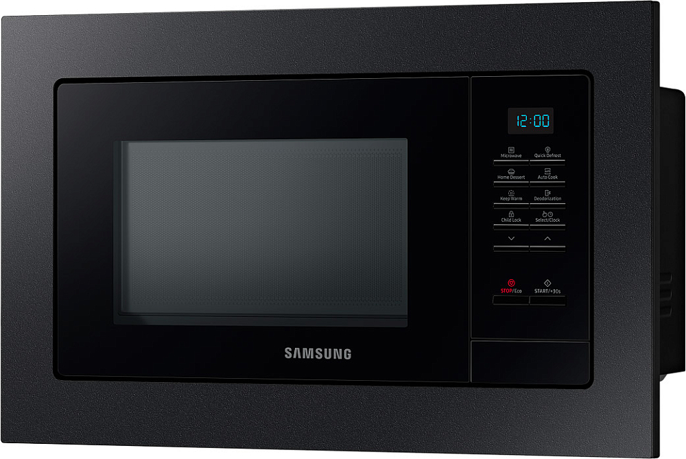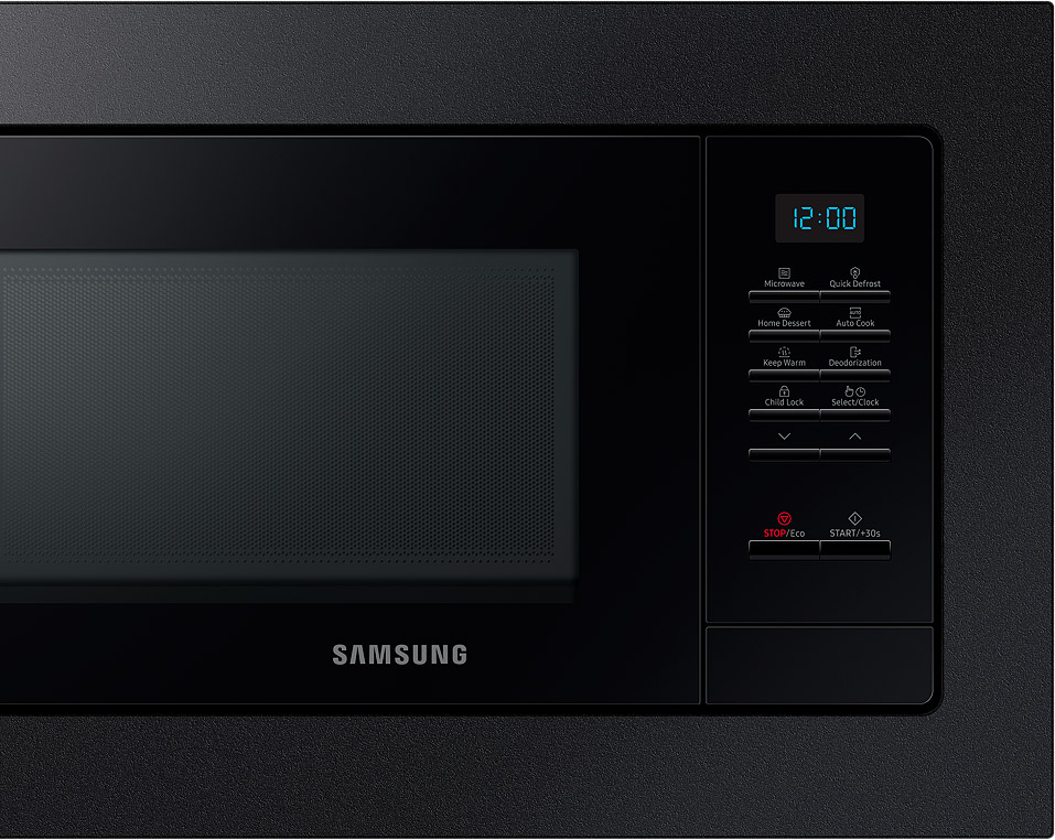 Премиальный дизайн и широкий выбор цветов Выберите встраиваемую микроволновую печь, которая идеально впишется в дизайн вашей кухни и удовлетворит ваш вкус. Улучшите вашу кухню с помощью элегантного дизайна Glass Touch и широкого выбора стильных цветов Больше стиля с новым дизайном Наслаждайтесь простым интуитивным управлением в одно касание и притягивающим минималистичным дизайном. На лицевой панели находится всего 6 сенсорных кнопок. Сделанные полностью из стекла они идеально смотрятся на микроволновой печи, создавая минималистичный дизайн. Всегда свежий хлеб Размораживайте хлеб быстро и просто, сохраняя его первоначальный вкус и аромат. Функция разморозки хлеба позволяет посчитать оптимальное время и температуру разморозки, чтобы насладиться выпечкой, как будто только из печи. Делать десерты еще приятнее Наслаждайтесь приготовленными без лишней траты времени домашними десертами. Выберите десерт из списка, смешайте ингредиенты и выберите опцию Десерты и с помощью одного касания вы получите доступ к большому списку предустановленных рецептов наиболее популярных десертов. Совершенная готовка Уникальная и инновационная система распределения микроволн помогает достичь большего прогресса в готовке. Микроволны распределяются по 3 направлениям, благодаря трем антеннам внутри печи. Микроволны проникают в пищу под разными углами, за счет чего достигается лучший опыт приготовления. Остается чистым Прочное покрытие микроволновой печи легко держать в чистоте и на нем не остается царапин. За счет отсутствия сколов на эмали не создается среды для распространения бактерий. БИОкерамическое покрытие камеры Samsung одобрено институтом Хоэнштейн, прочная поверхность защищает от бактерий на 99.9%.