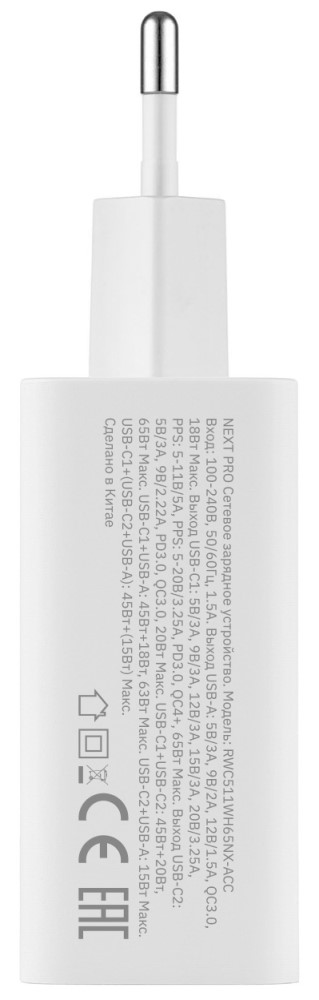 Модель: Next Pro 65W 2xUSB-C USB-A Белый
