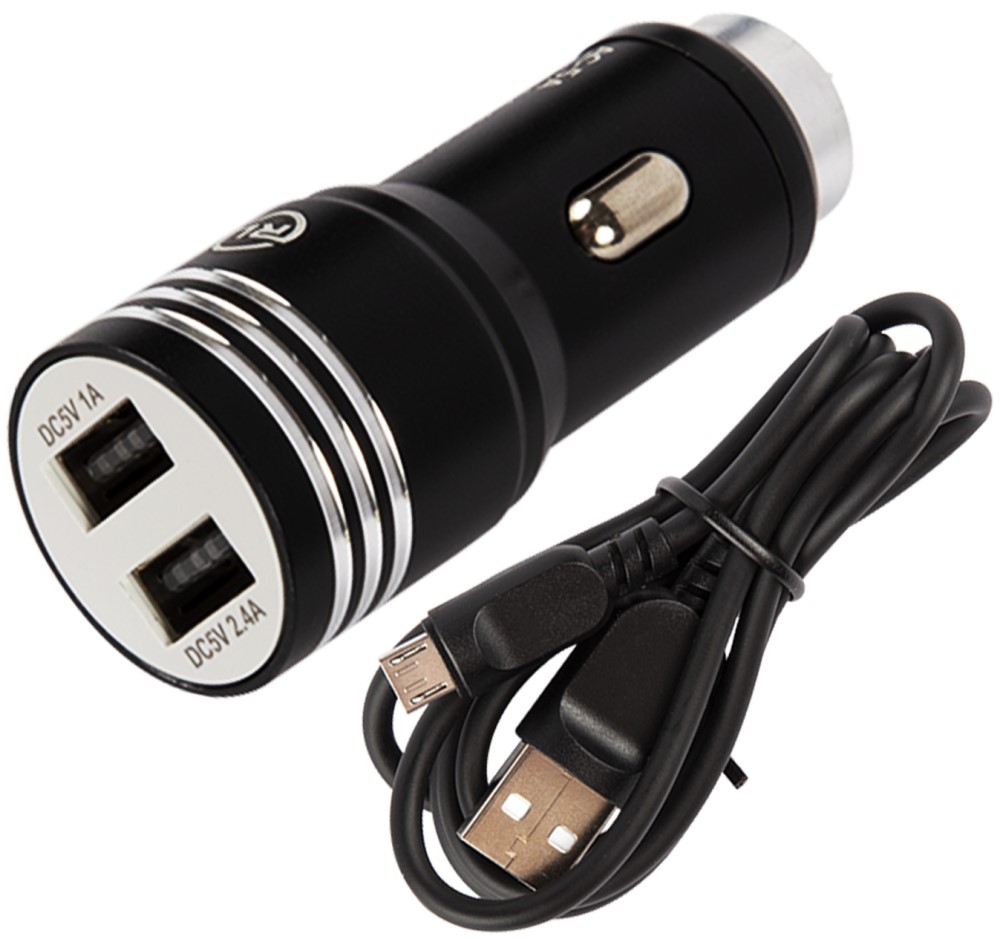 автомобильное зарядное устройство и дата-кабель. С помощью этого комплекта вы без проблем сможете зарядить в пути электронные гаджеты: смартфон, планшет, ноутбук, плеер.