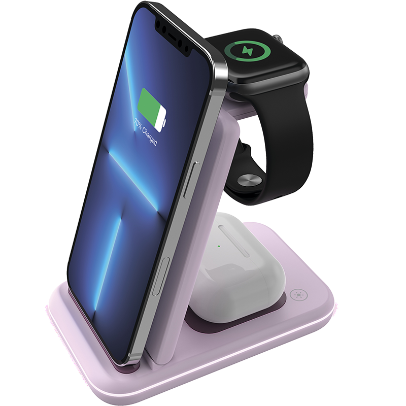 Модель:Зарядное устройство беспроводное Canyon Qi WS-304 3 в 1, 15W, розовое (складное)