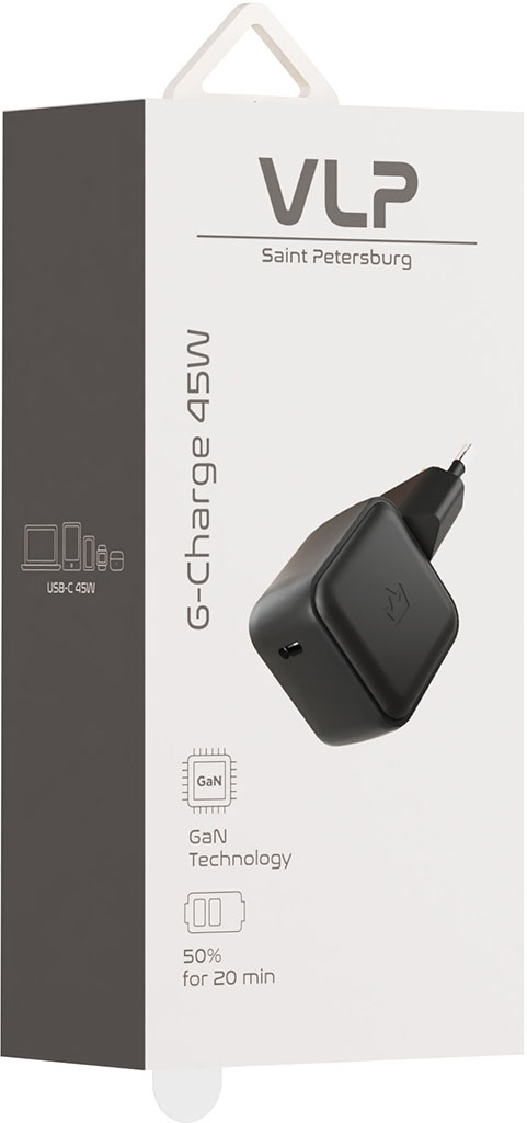 VLP G-Charge 45W — компактная GaN-зарядка USB-C, которая может зарядить смартфон на 50% за 20 минут и подходит для зарядки ноутбуков и игровых приставок.