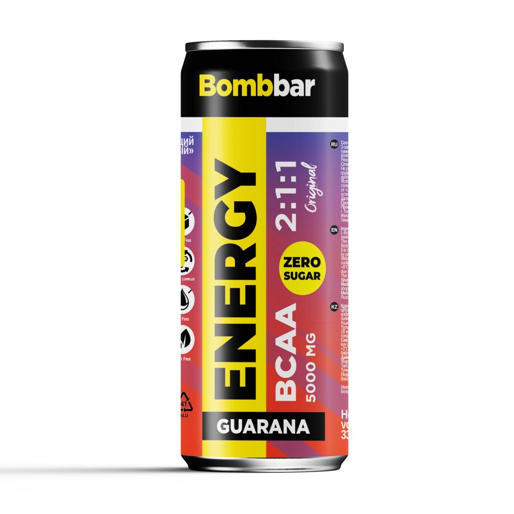 вода подготовленная, регуляторы кислотности (лимонная кислота, цитрат натрия 3-замещенный), L-лейцин, L-изолейцин, L-валин, экстракт семян гуараны, ароматизаторы, кофеин, гуммиарабик, ксантановая камедь, подсластитель сукралоза, бензоат натрия, краситель сахарный колер IV, витамины (С, В1, В3, В5, В6, В7, В9, В12).