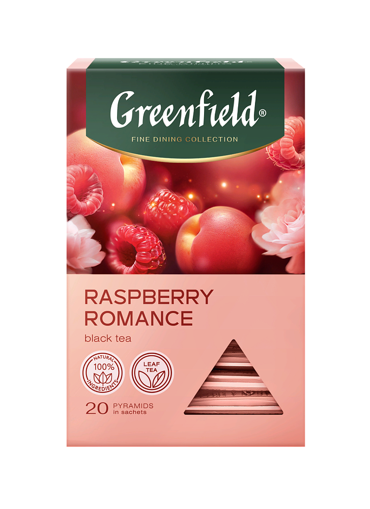 Чай чёрный Гринфилд Распберри Романс в пирамидках, с ароматом малины, розы и персика, 20 шт х 1,8 г