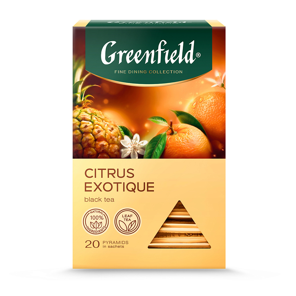 Чай чёрный Гринфилд Цитрус Экзотик в пирамидках, с ароматом юдзу, ананаса и лемонграсса, 20 шт х 1,8 г