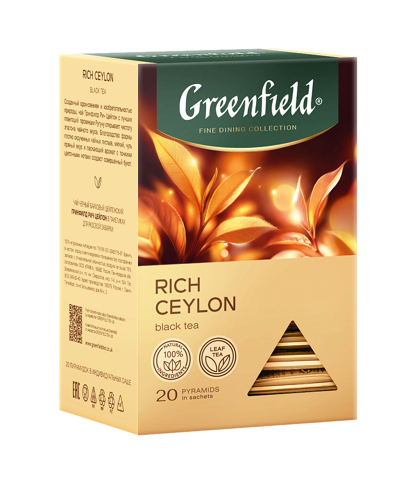 Чай чёрный Гринфилд Рич Цейлон в пирамидках, 20 шт х 1,9 г