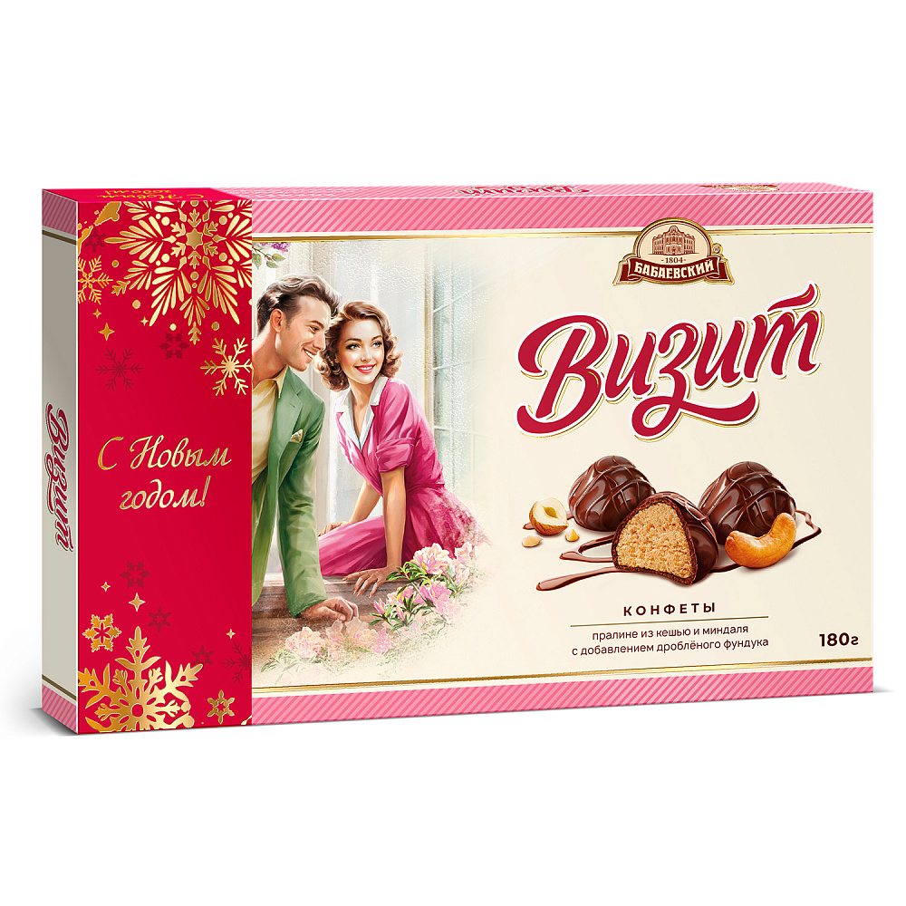 Коробка конфет Визит от концерна Бабаевский. Светлое пралине с насыщенным орехово-сливочным вкусом, покрытое шоколадной глазурью.
