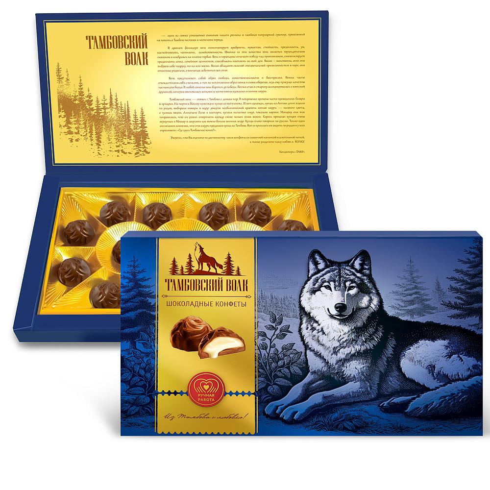 Конфеты ручной работы со сливочной начинкой и алкогольной нотой. Тамбовский волк является одним из наиболее популярных символов г. Тамбова.