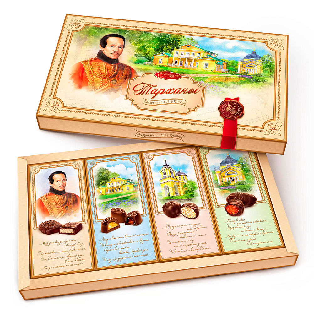 Визитная карточка города Пензы. Элитные сорта конфет: "Виолончель" (курага в шоколадной глазури), "Звездный август" (мягкий грильяж из ореха фундука с добавлением меда в шоколадной глазури), шоколадные конфеты с абрикосовй начинкой и начинкой со вкусом крем-брюле, конфеты с шоколадной посыпкой "Я тебя люблю".