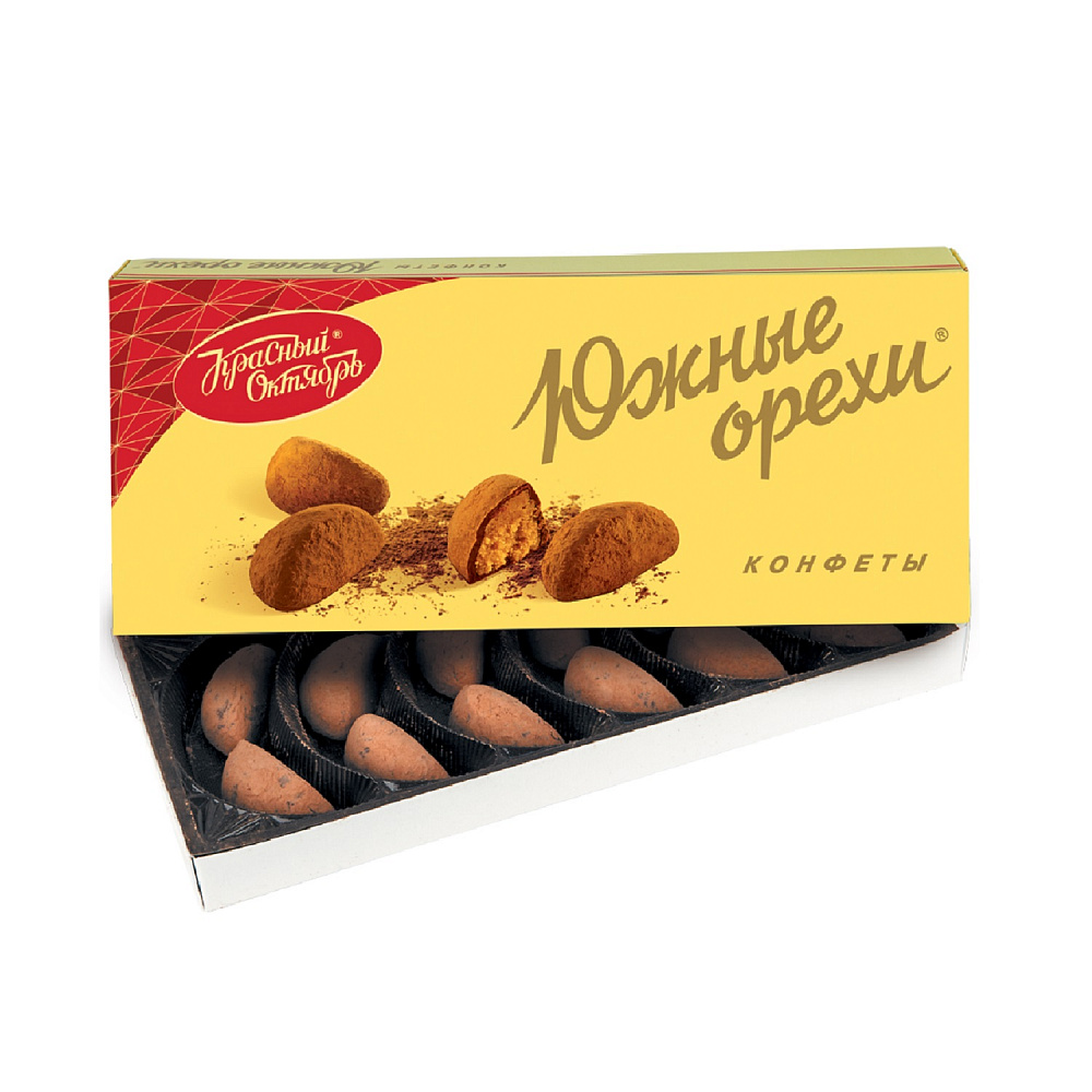 Сахар, шоколадная глазурь (сахар, какао тёртое, эквивалент масла какао (рафинированные, дезодорированные, фракционированные, негидрогенизированные растительные масла (пальмовое, ши)), какао-порошок, эмульгаторы: лецитин соевый, Е476; ароматизатор «Ваниль»), вода питьевая, сгущенное с сахаром молоко (цельное молоко, сахар), патока, ядро ореха миндаля тёртое, заменитель молочного жира (рафинированные, дезодорированные переэтерифицированные, частично гидрогенизированные и фракционированные растительные масла (пальмовое, подсолнечное, пальмоядровое), антиокислитель токоферолы, концентрат смеси), какао-порошок, спирт этиловый ректификованный (0,2%), ароматизаторы натуральные: «Ваниль», «Коньяк». Противопоказано при индивидуальной непереносимости белка молока. Возможно наличие незначительного количества фундука.