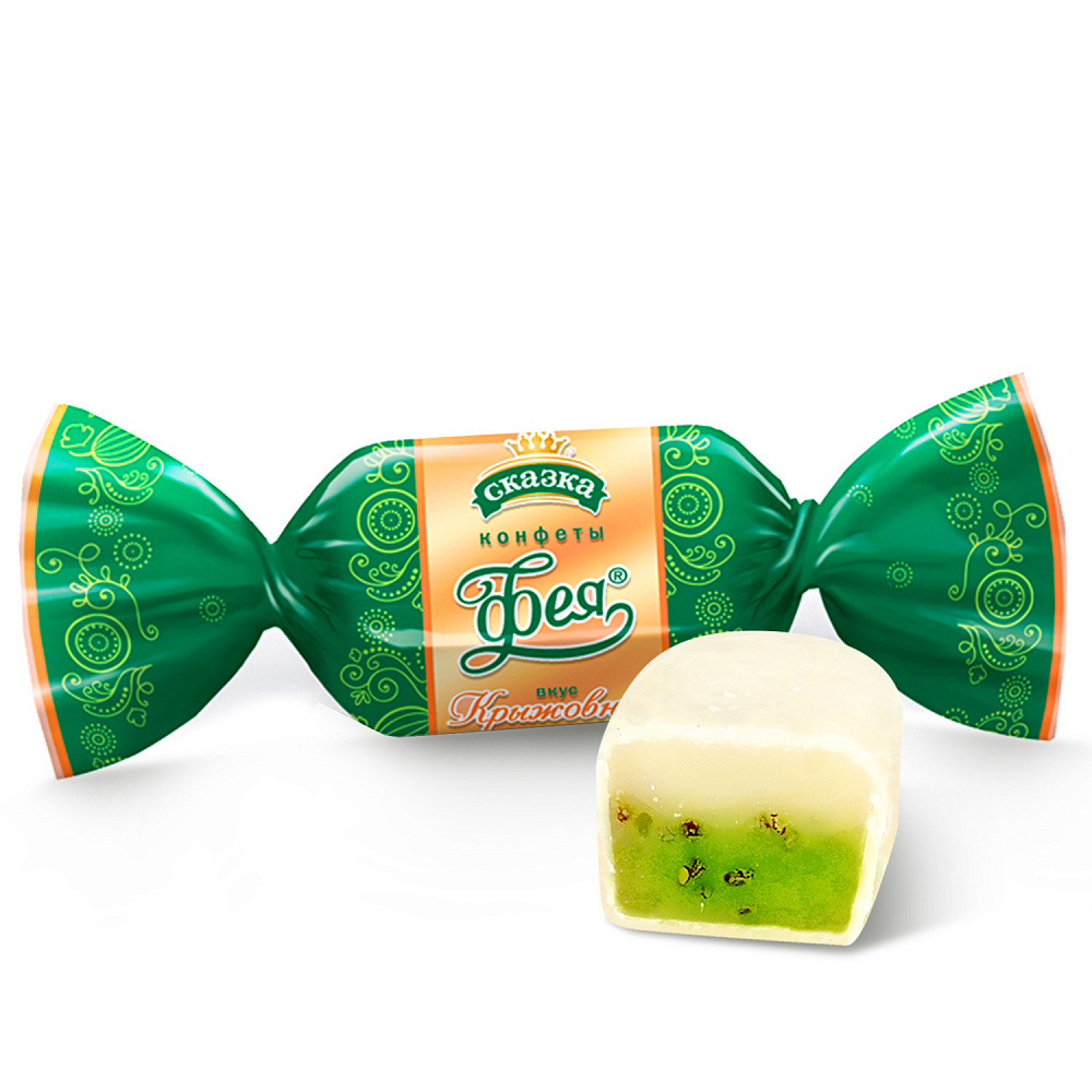 Двухслойные конфеты «Сказка» Фея вкус крыжовник - желейные кирпичики с фруктово-сливочным вкусом, с добавлением семян чиа и покрытые хрустящей белой глазурью.