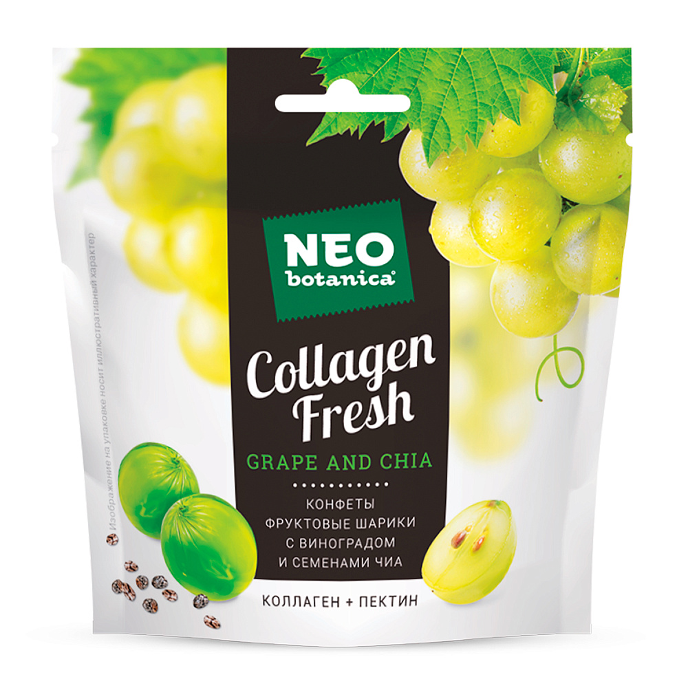 Конфеты неглазированные с желейным корпусом «Фруктовые шарики» Neo-botanica Collagen Fresh с виноградом и семенами чиа, 55гр