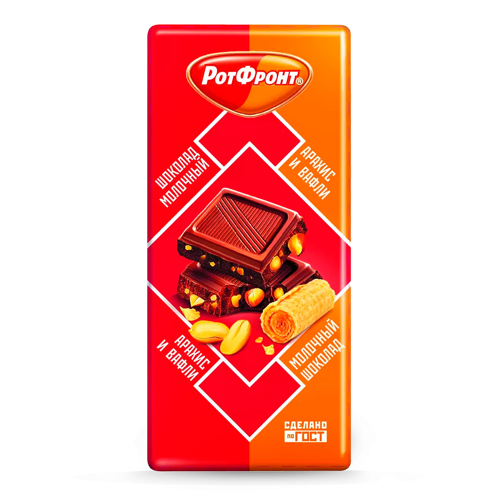 сахар, какао тёртое, молоко сухое цельное, масло какао, ядра арахиса обжаренные дроблёные солёные (арахис, соль пищевая (содержит агент антислеживающий Е536)), сыворотка молочная сухая, вафли дроблёные (вода питьевая, мука пшеничная, крахмал картофельный, масло подсолнечное, эмульгатор лецитин соевый, соль пищевая (содержит агент антислеживающий Е536), разрыхлитель Е500, меланж яичный сухой, регулятор кислотности лимонная кислота), эквивалент масла какао (рафинированные дезодорированные растительные масла (пальмовое, ши)), молочный жир, эмульгаторы: Е442, Е476; ароматизаторы: «Ваниль», «Фундук», «Ванильный». Содержание общего сухого остатка какао – не менее 25,0%, сухого молочного остатка – не менее 12,0%. Шоколад содержит не более 5% эквивалента масла какао. Противопоказано при индивидуальной непереносимости белка молока и/или яичного белка. Возможно наличие незначительных количеств орехов (фундука, миндаля, кешью), кунжута, кусочков ягод, фруктов; драже цветного, гранул капучино.