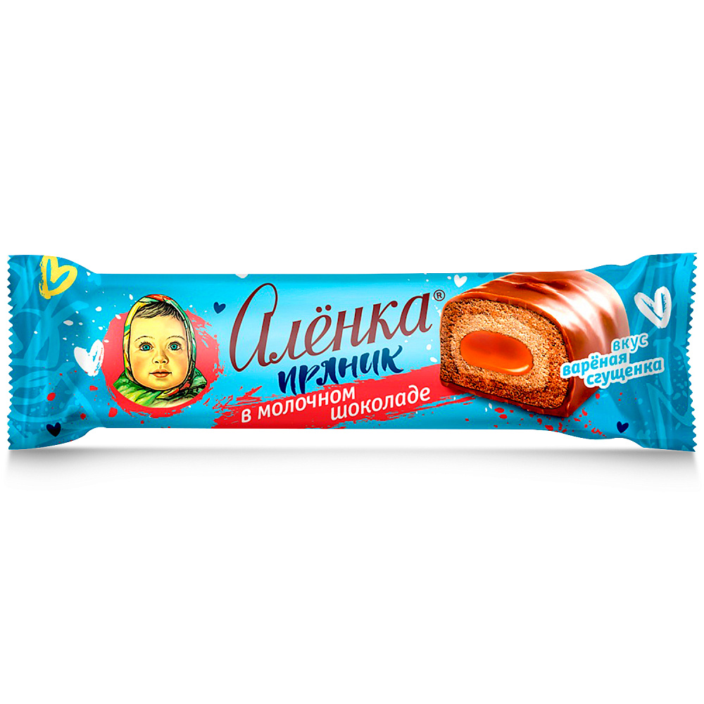 «Алёнка» пряник двухслойный в молочном шоколаде, с начинкой из вареной сгущенки. Пряник в удобном формате батончика и мягче классического пряника.