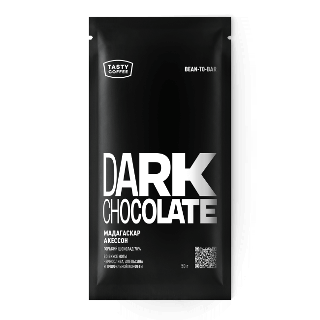 Горький шоколад Мадагаскар Акессон , 70% с нотами чернослива, апельсина и трюфельной конфеты.
