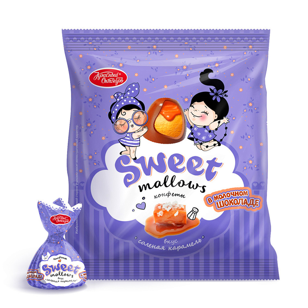 патока, шоколад молочный (сахар, сухое цельное молоко, масло какао, какао тёртое, эмульгаторы: лецитин соевый, Е476; ароматизаторы), сахар, сгущенное с сахаром молоко (молоко нормализованное, сахар (сахароза), сахар молочный (лактоза)), заменитель молочного жира (растительные масла, антиокислители: Е304i, Е307), желатин, влагоудерживающий агент Е420ii, соль, краситель Е150с, желирующий агент пектин, белок сухой яичный, ароматизатор «Карамель солёная», консервант Е202. Противопоказано при индивидуальной непереносимости белка молока и/или яичного белка.