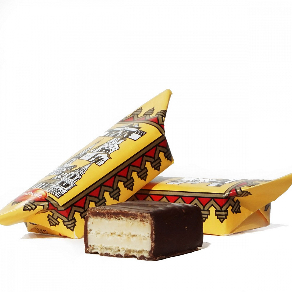 Нежные хрустящие конфеты Замоскворечье с вафлями, прослоенными воздушным сливочным кремом и темной шоколадной глазурью.