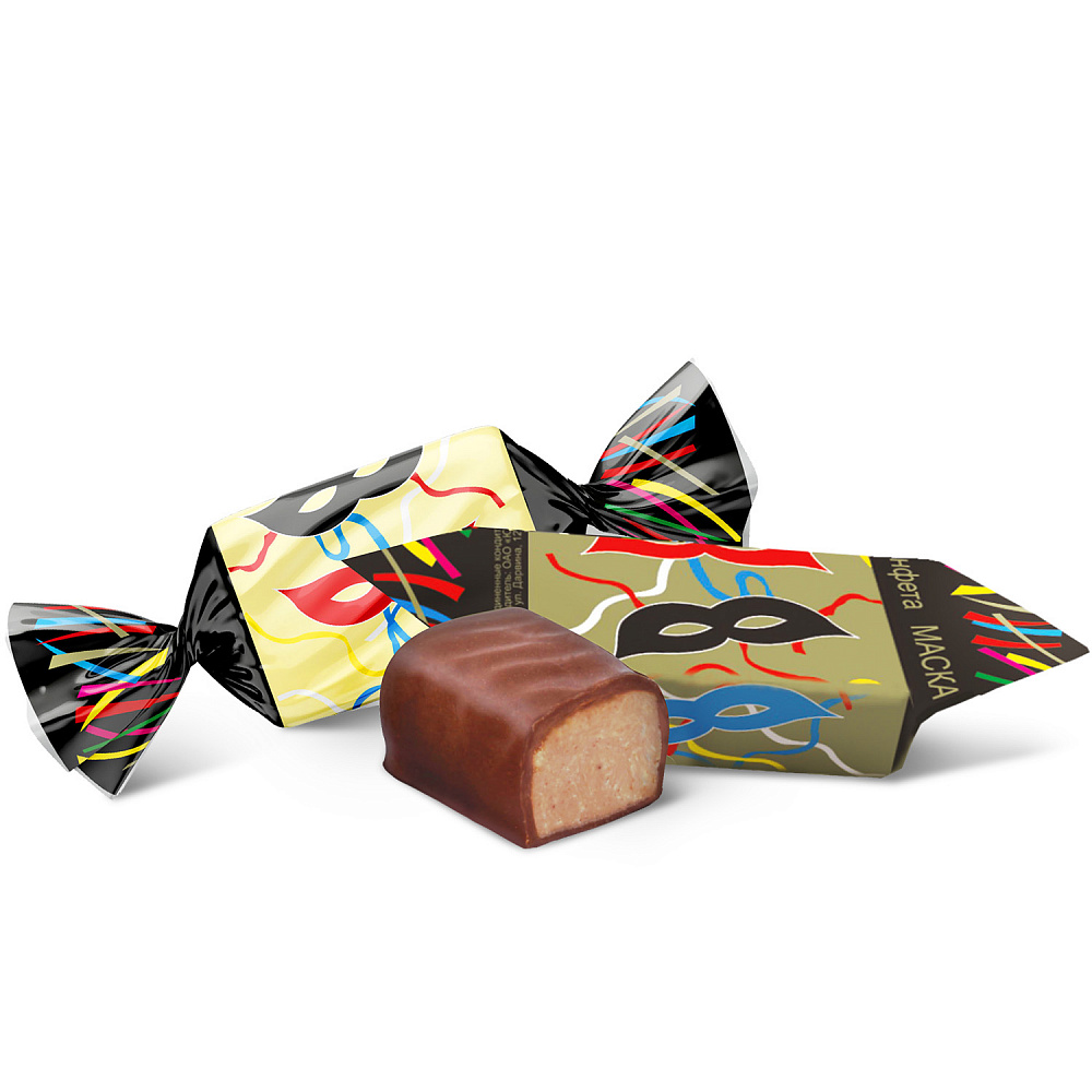 Конфеты глазированные шоколадной глазурью с корпусами из массы типа пралине "Маска".
