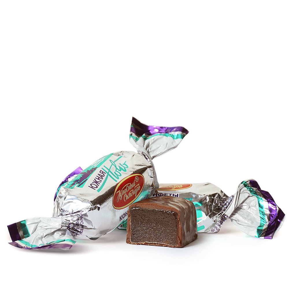Знаменитая Южная ночь, конфета из нежного фруктового желе слегка зернистой текстуры, покрытая шоколадной глазурью.