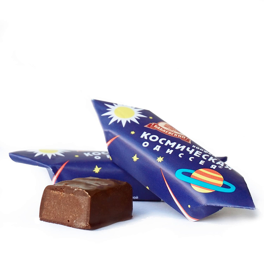 Глазированные конфеты Космическая одиссея с начинкой из шоколадной помадки с легким коньячным привкусом.