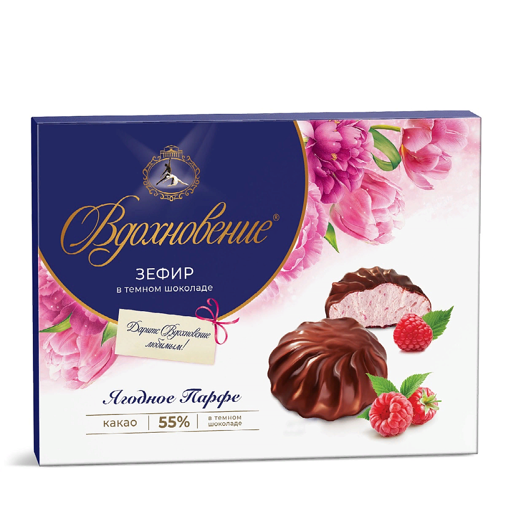 Сахар, шоколад темный (сахар, какао тертое, какао-порошок, масло какао, молочный жир, эмульгаторы: лецитин соевый, Е476; ароматизатор «Ваниль»), пюре яблочное (яблоки, консервант – диоксид серы), патока, вода питьевая, желирующий агент - пектин, белок сухой яичный, регуляторы кислотности: молочная кислота, лактат натрия, лимонная кислота; малина сушеная (кусочки), смородина сушеная (кусочки), ароматизатор натуральный «Малина со сливками». Противопоказано при индивидуальной непереносимости яичного белка. Возможно наличие незначительного количества арахиса, орехов.