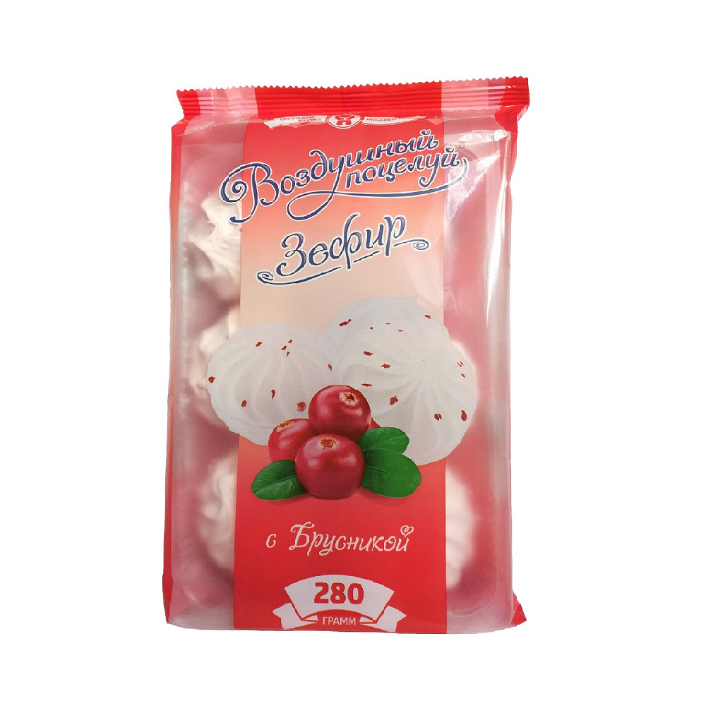 Зефир Воздушный поцелуй с брусникой, Шоколадная фабрика Новосибирская, 280 гр.