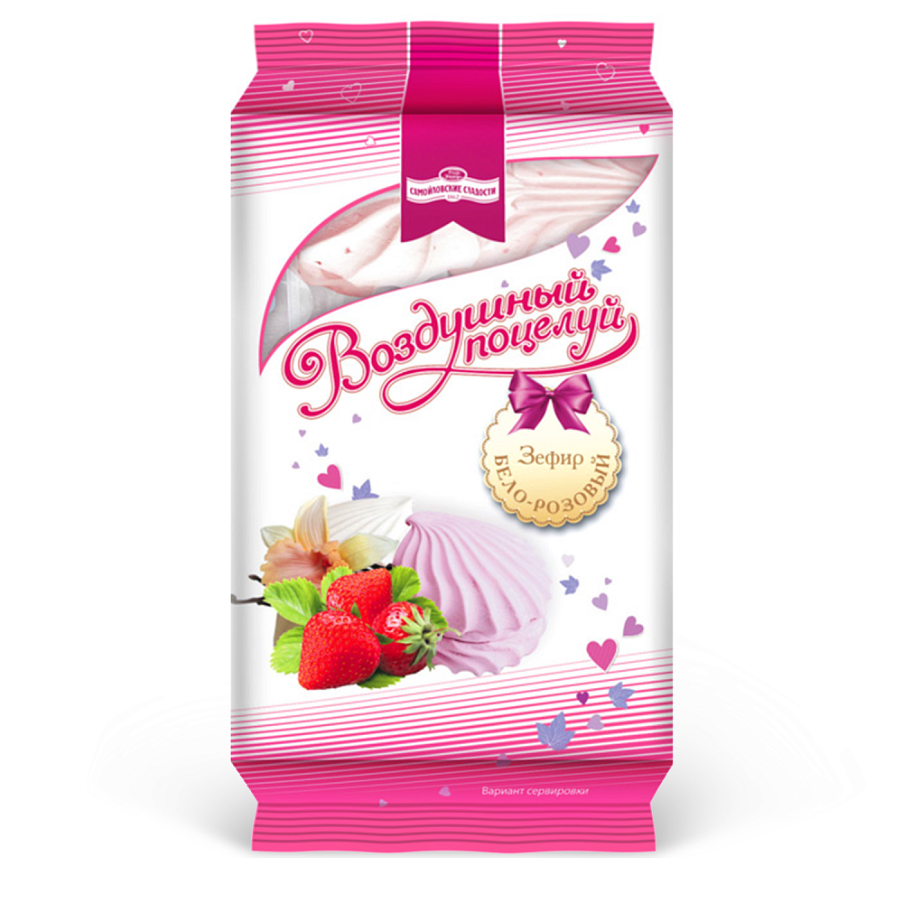 Зефир Воздушный поцелуй бело-розовый Экстра, Кондитерская фабрика им. К. Самойловой, 250 гр