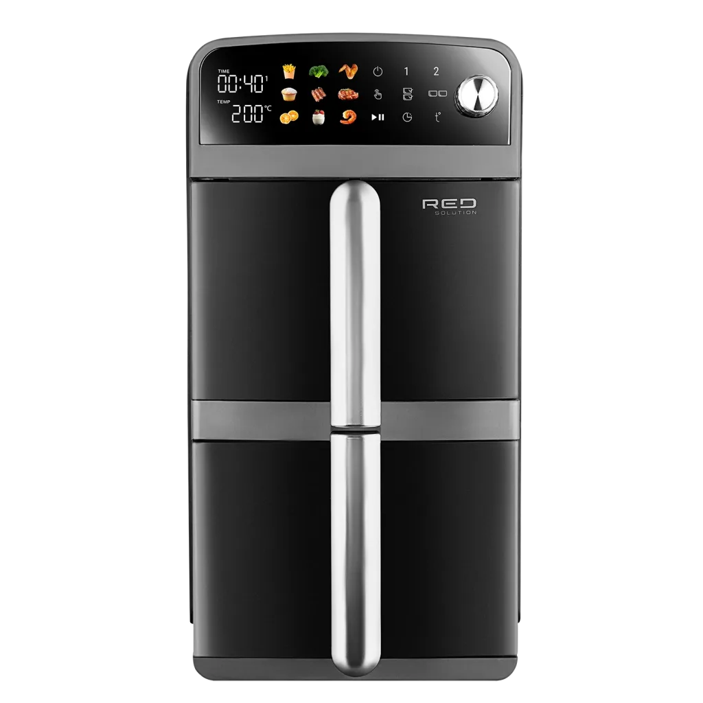 Аэрогриль RED SOLUTION W255 удивит даже тех, кто привык к современной кухонной технике. Две независимые чаши по 5 литров позволяют готовить несколько блюд одновременно, а умные функции синхронизации помогут добиться идеального результата. Мощность 2400 Вт, сенсорный дисплей, 10 автоматических программ и корзины с антипригарным покрытием делают его незаменимым помощником на современной кухне.