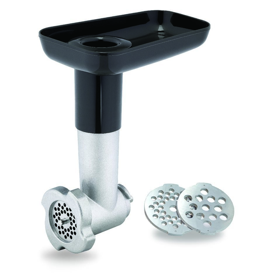 Насадка выполнена из прочных и гигиеничных материалов, что обеспечивает долговечность и легкость в уходе. В комплект входят решетки для разного помола, что делает прибор незаменимым для домашнего приготовления фарша, паштетов и мясных деликатесов. Простое крепление и легкое управление позволяют использовать насадку даже тем, кто ранее не работал с мясорубками.