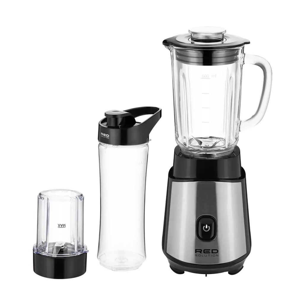 RED SOLUTION RSB-M3427 — компактный стационарный блендер с набором полезных аксессуаров. В комплекте с устройством идет стакан для измельчения кофе и специальная дорожная бутылка, прямо в которой можно готовить смузи, домашний лимонад или спортивное питание. Мощный двигатель и острые ножи из нержавеющей стали справятся даже с самыми твердыми продуктами.
