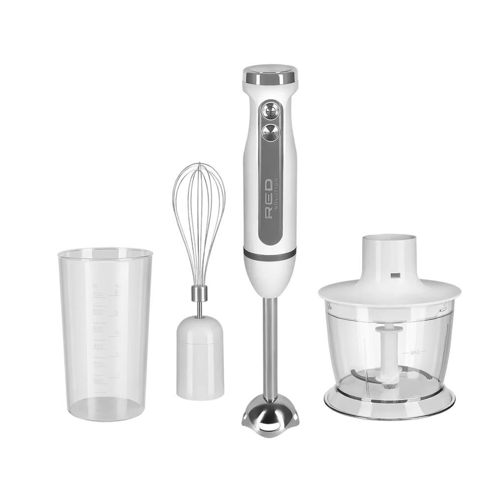Блендер RED SOLUTION RHB-2969 — многофункциональный прибор с комплектом сменных насадок, который поможет вам значительно сократить время на подготовку ингредиентов для салатов, супов, заготовок, выпечки, десертов и других блюд.
