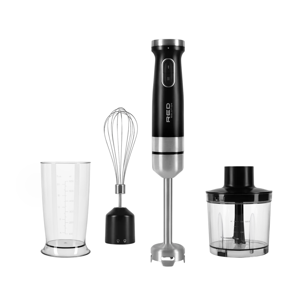 Погружной блендер RED SOLUTION HB2903 — мощный универсальный кухонный прибор, с которым домашняя кулинария выйдет на новый уровень. В комплектацию устройства входят три насадки (блендер, венчик и чаша-измельчитель) и высокий мерный стакан для смешивания. Готовьте соусы, крем-супы, молочные коктейли, измельчайте твердые продукты и меняйте привычную текстуру блюд — все это при помощи одного устройства.