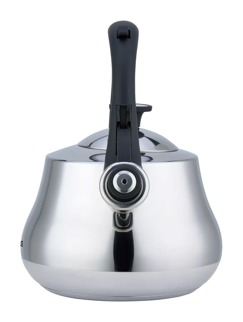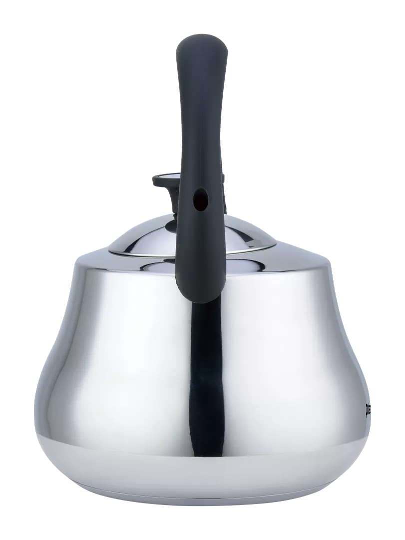 Чайник со свистком изготовлен из высококачественной нержавеющей стали 18/10. Уникальный запатентованный дизайн: отверстие для залива воды смещено относительно центра (ручки) для удобства залива.