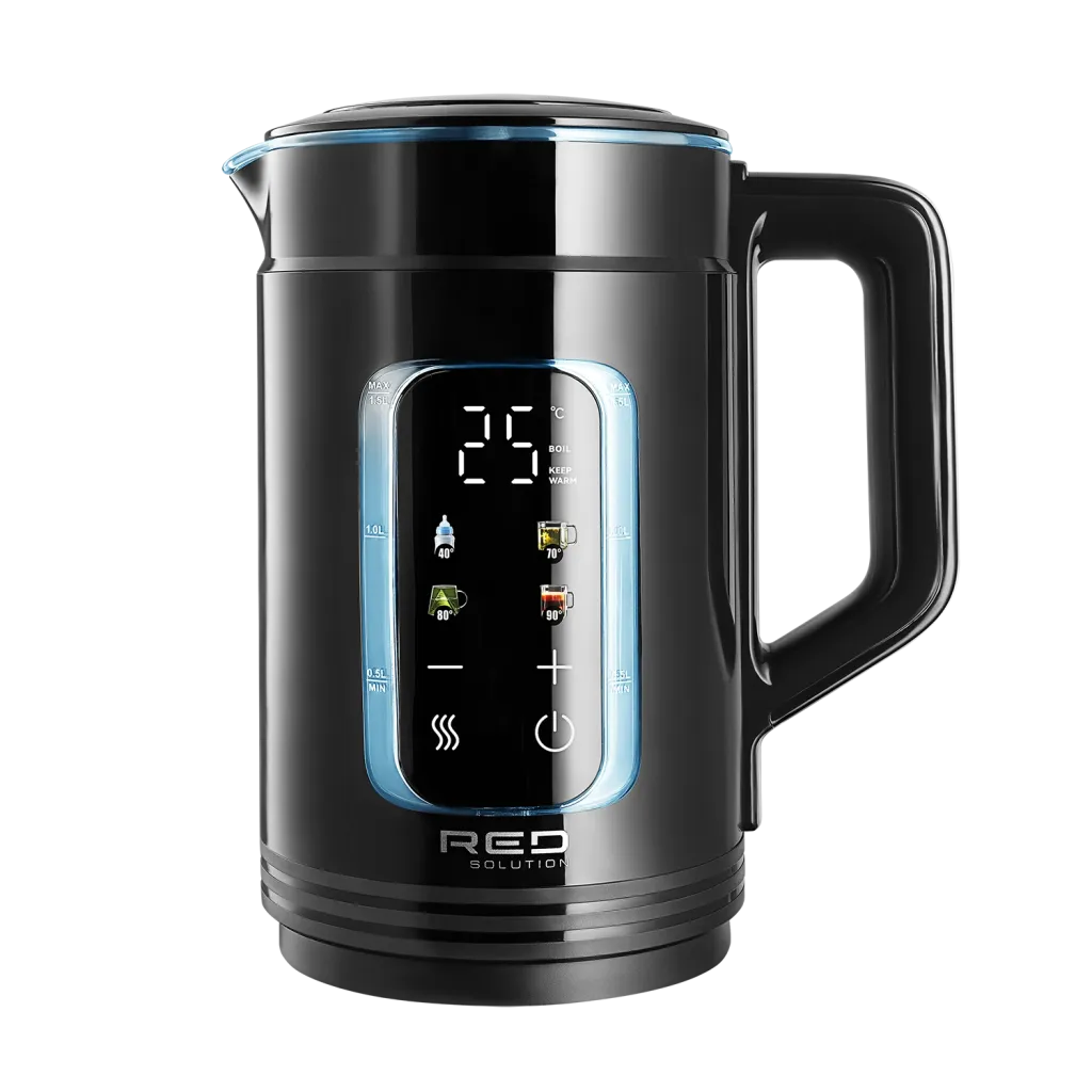RED SOLUTION COLORSENSE AG119DB — электрический чайник с интеллектуальной цветовой индикацией и точным контролем температуры. Благодаря удобному сенсорному дисплею можно выбрать оптимальную температуру от 40°C до 100°C для любого напитка. Двойные стенки и функция автоподогрева до 2 часов поддерживают температуру после закипания. Стильный дизайн с подсветкой и вместительная колба на 1,5 литра делают его идеальным помощником на кухне.