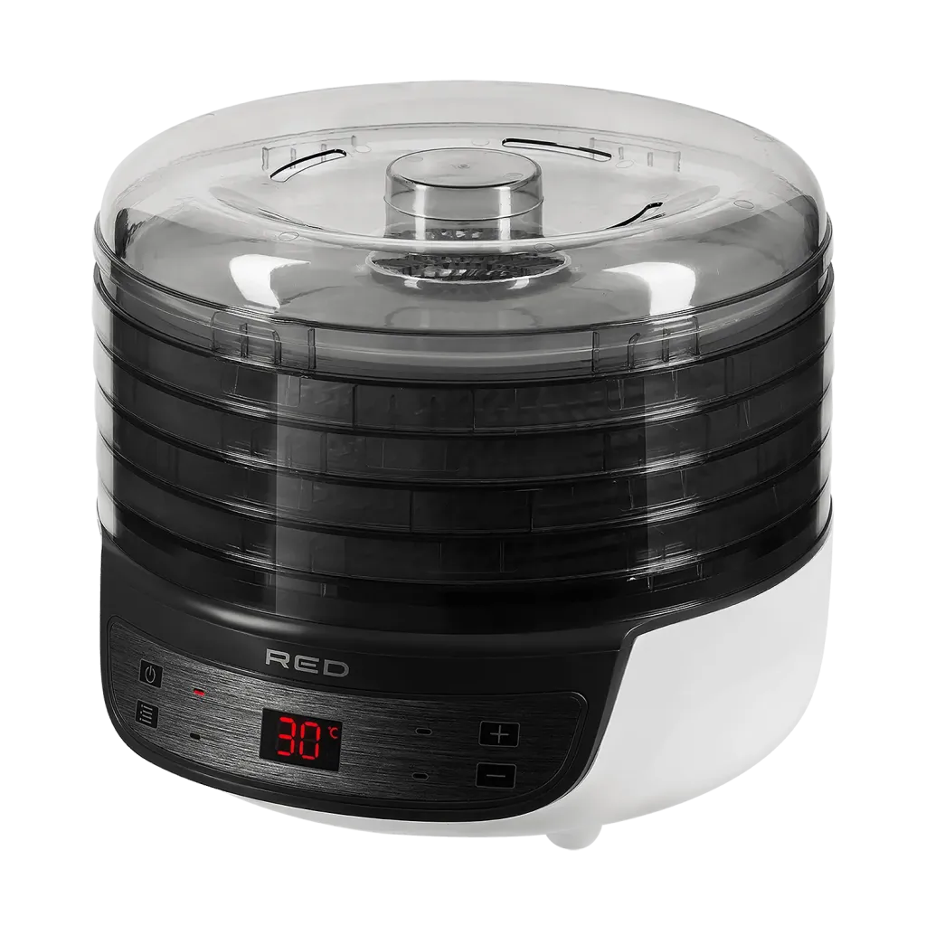 Электросушилка RED SOLUTION RFD-0122 поможет сделать заготовки из овощей, фруктов, ягод, грибов и зелени, сохранив в них максимальное количество питательных веществ. Диаметр электросушилки всего 32 см. При столь компактных размерах прибор отличается высокой эффективностью: за 6-8 часов RFD-0122 способна высушить несколько килограммов продуктов.