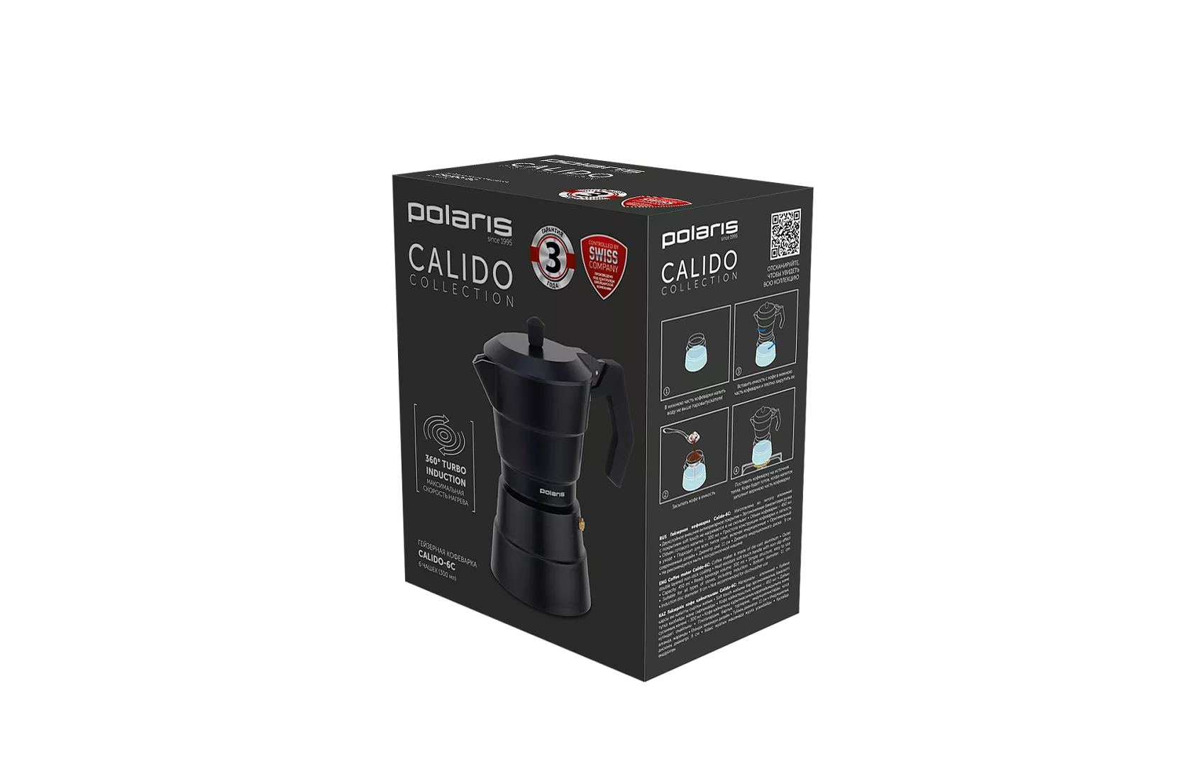 Гейзерная кофеварка Calido-6C изготовлена из алюминия.