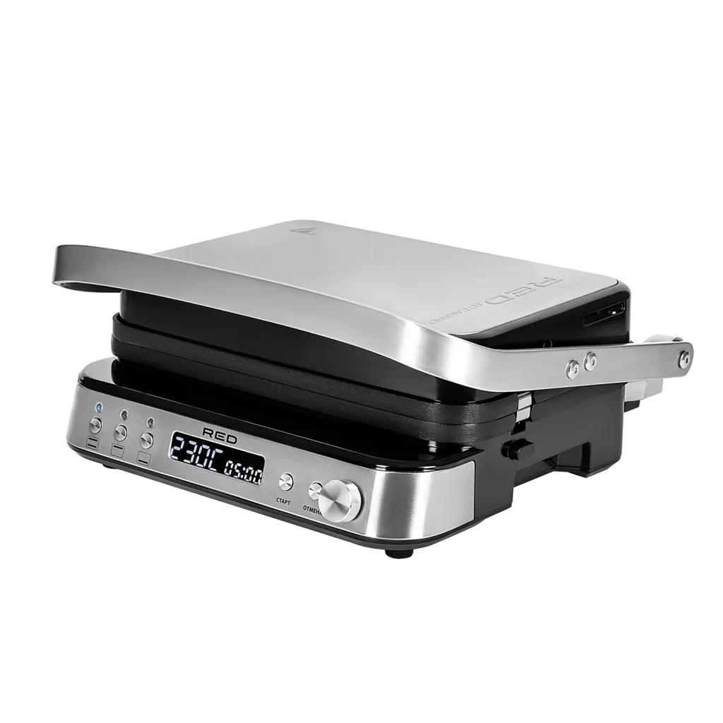 Универсальный гриль RED SOLUTION RGM-M819D объединяет функции гриля, духовки и барбекю в одном устройстве. Мощность 2000 Вт и максимальная температура нагрева 230 °C позволяют быстро готовить сочные блюда. Уникальной особенностью этой модели являются двусторонние съемные панели. Антипригарное покрытие позволяет не использовать масло, а книга рецептов от бренд-шефа RED SOLUTION поможет максимально раскрыть возможности гриля.