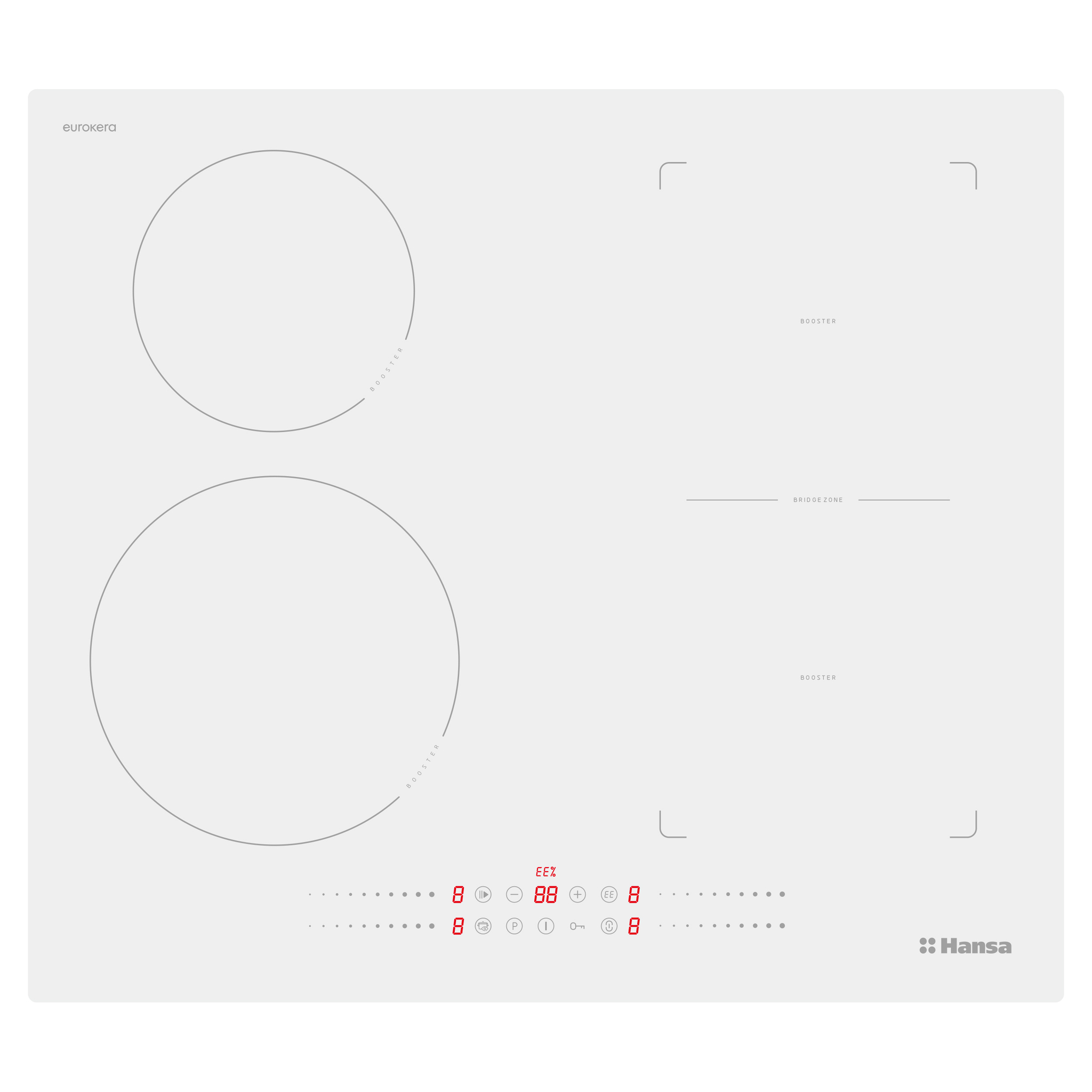 Индукционная варочная панель Hansa BHI68600 белая – 4-конфорочная модель с черной стеклокерамической поверхностью. Быстрый нагрев, 9 уровней мощности и функция Booster для кипячения. Безопасность: защита от детей, таймер, индикатор остаточного тепла. Энергоэффективность и легкий уход, сенсорное управление. Технологии Hansa для комфортной готовки!