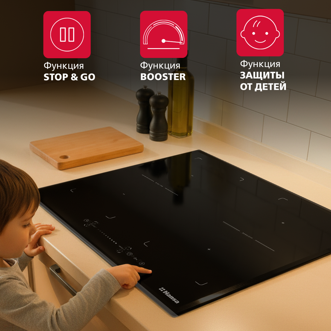 Индукционная варочная панель Hansa BHI68902 - это современное решение для вашей кухни, которое сочетает в себе стильный дизайн и передовые технологии. Модель оснащена четырьмя конфорками с технологией Booster, что позволяет готовить одновременно несколько блюд, а функция "мост" объединяет две конфорки в одну большую зону, идеальную для посуды нестандартных размеров. Нагрев осуществляется непрерывно без колебания мощности благодаря технологии Inverter. Слайдерное управление обеспечивает удобство и точность настройки, а индикатор остаточного тепла предупредит о нагретой поверхности, повышая безопасность использования. Варочная панель Hansa BHI68902, благодаря своей лаконичной прямоугольной форме и черному цвету, гармонично впишется в любой интерьер. Функция таймера и автоматического отключения значительно упростит процесс приготовления блюд.