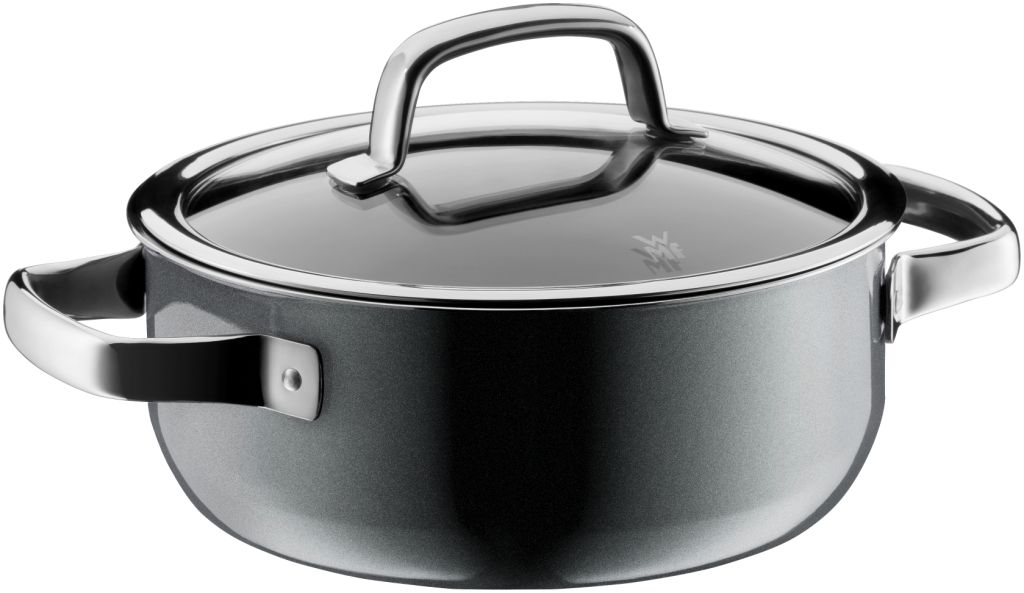 Готовьте любимые блюда в индукционной низкой кастрюле Fusiontec от WMF с крышкой.