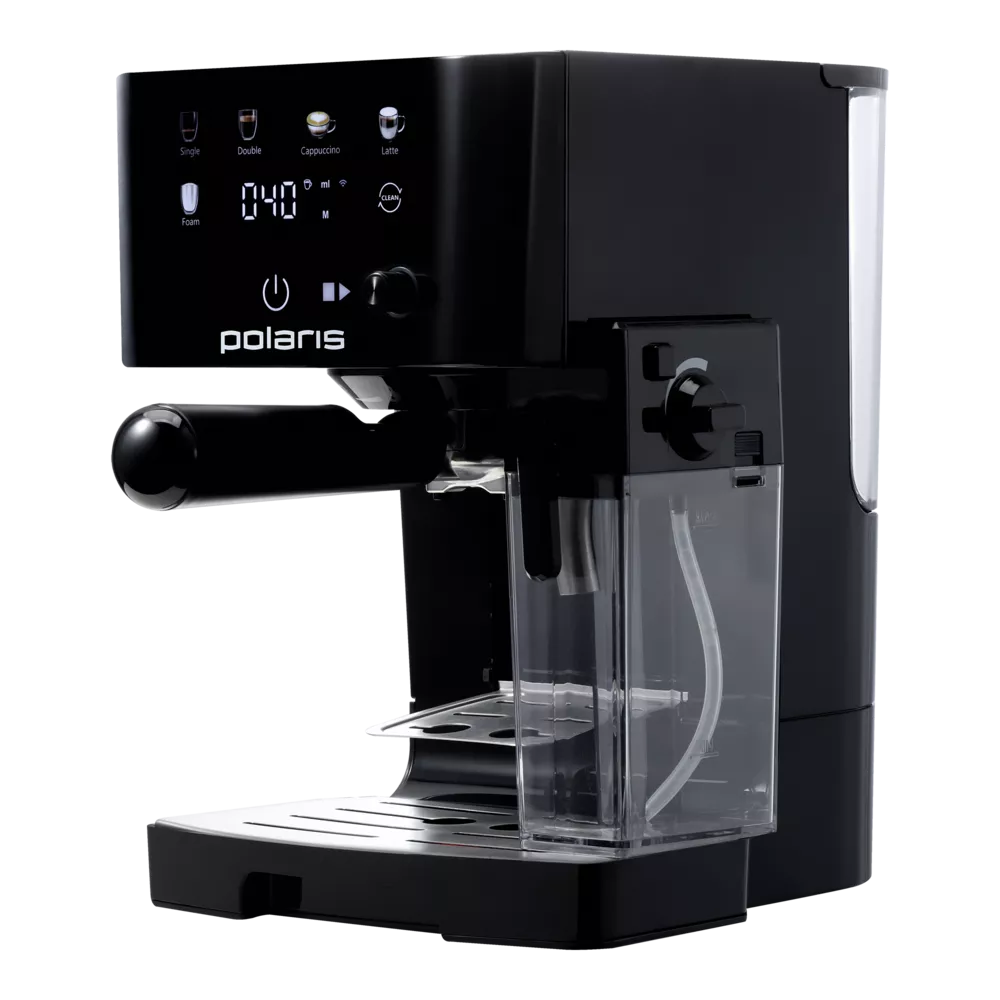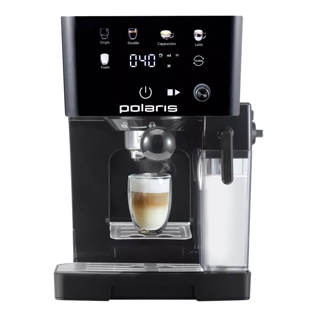 Рожковая кофеварка с черной передней панелью, LED-дисплеем, автоматическим капучинатором и интегрированным управлением. Помпа ULKA итальянского производства с давлением 19 бар обеспечивает насыщенный вкус эспрессо и превосходную кофейную пенку. Электронный контроллер PCB и датчик NTC поддерживают стабильную и точную температуру для идеального напитка. Встроенный Wi-Fi модуль для управления кофеваркой со смартфона. Расходомер обеспечивает точность объема приготавливаемого кофе.