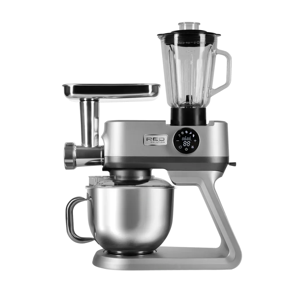 Новая модель кухонной машины RED SOLUTION Х1000 – это мощный многофункциональный прибор, который выполняет работу нескольких устройств: планетарного миксера, стационарного блендера, овощерезки и мясорубки. Меняя рабочие блоки кухонной машины и их насадки, можно быстро и удобно подготавливать ингредиенты для любых блюд: делать соусы, супы и крем-супы в блендере, шинковать капусту и морковь для салатов и консервации, готовить фарш для котлет или домашних колбасок. Кроме того, кухонная машина Red solution X1000 снабжена встроенными электронными весами для быстрого и точного взвешивания ингредиентов.