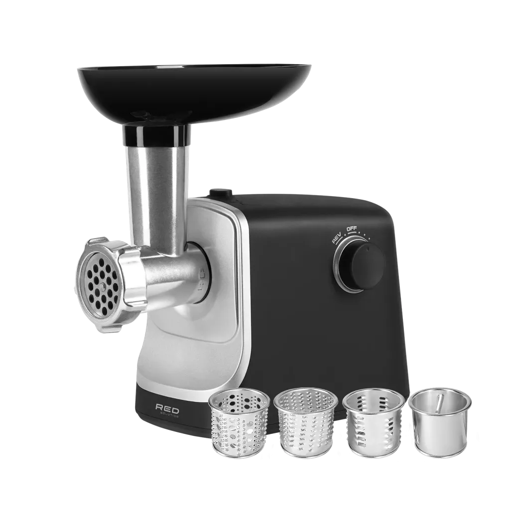 RED SOLUTION RMG-1213-6 — это мясорубка 7 в 1 с мощностью 1340 Вт, высокой производительностью до 1,5 кг/мин и функцией реверса. Благодаря компактному размеру, легкому весу и низкому уровню шума, она идеально подойдет для любой, даже маленькой, кухни. Выполненная из качественных материалов, она гарантирует безопасность и долговечность в использовании. С двумя дисками для фарша крупной и мелкой перфорации, четырьмя насадками для шинкования овощей, а также двумя для приготовления колбасок и кеббе, мясорубка RMG-1213-6 — надежный помощник на кухне.