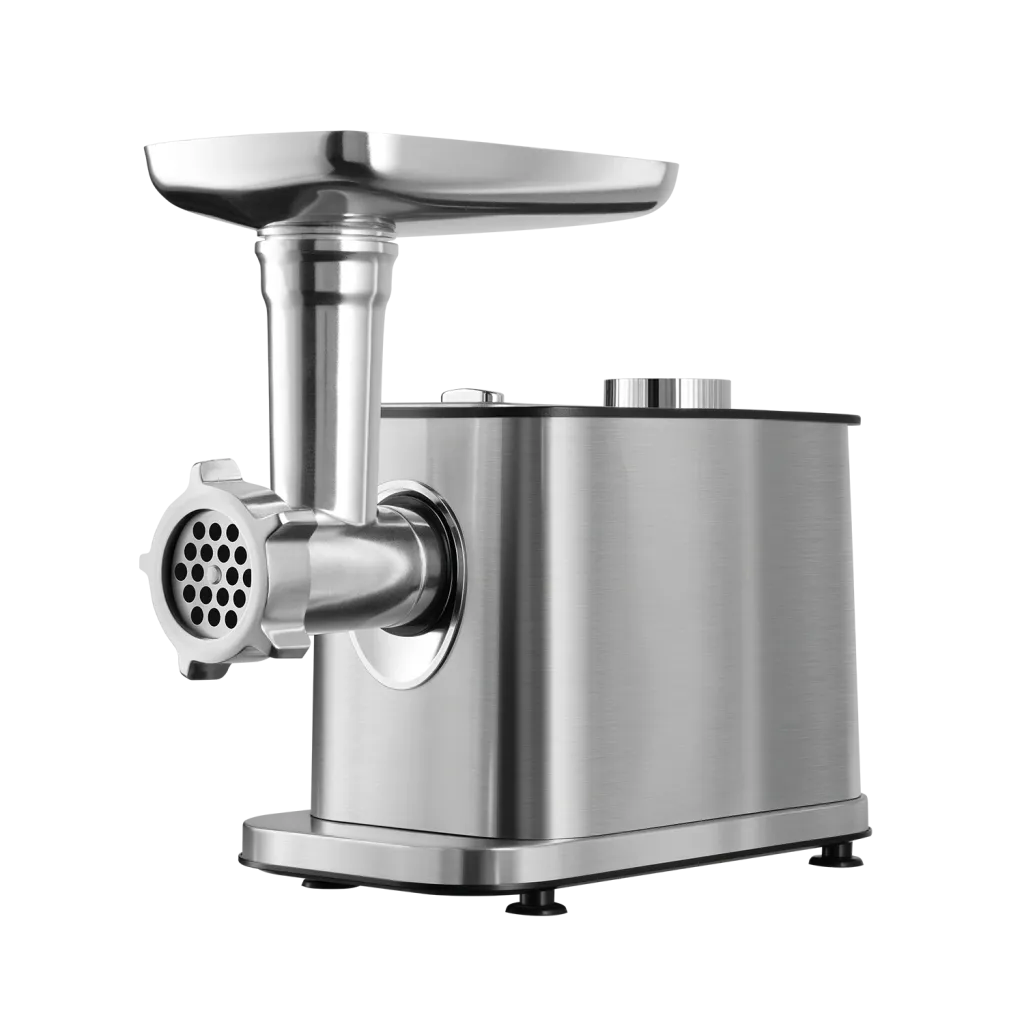 RED SOLUTION MG150D – современная электрическая мясорубка мощностью 2000 Вт, способна перемолоть до 2 кг фарша в минуту. В комплекте идут 3 диска с разной решеткой для фарша разного помола, а также 2 насадки для изготовления домашних колбас и кеббе. Для максимального удобства работы мясорубка оснащена вращающимся регулятором скорости с индикацией на цветном светодиодном дисплее.