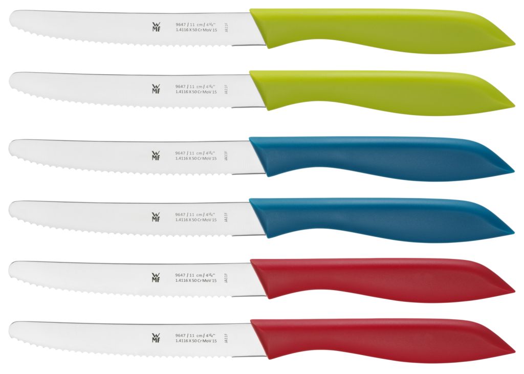 Приготовление блюд будет комфортным с набором надежных ножей WMF с яркой рукоятью.